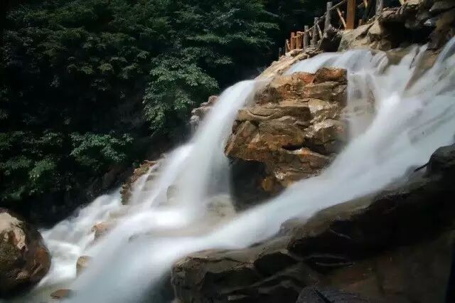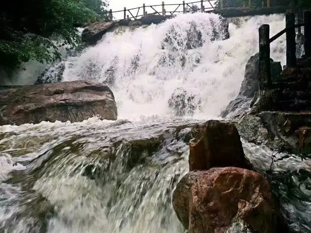 大雨后山里的水流都湍急起来了,飞瀑流泉悬空而下,远远望去,如同条条玉带挂于树梢,闪闪发光,古诗有云“山中一夜雨,树杪百重泉”是也。如此的美景,大家是不是都想来亲身感受了。